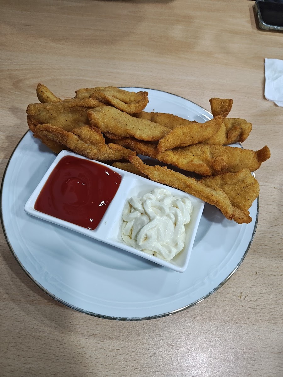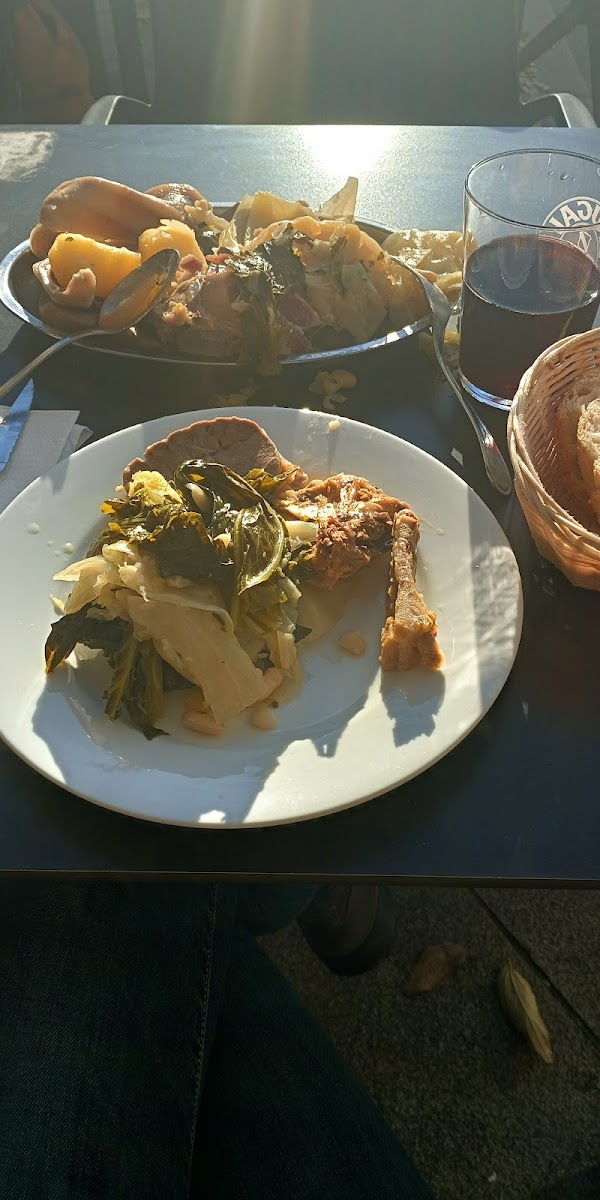 Sacando que la decoración es del celta y yo del Depor. La comida es esplendida. Un menú de 15 € . Comimos una fabada ... Manjar de los dioses y de segundo una chuleta de ternera al punto con patatas que cambie por ensalada . Cuando llegue al postre me arrepentí de no sacar fotos y el dueño Carlos sacó fotos de la fabada y de la carne. Lo recomiendo 100%. De postre tarta de piña y el suegro flan con nata todo casero.